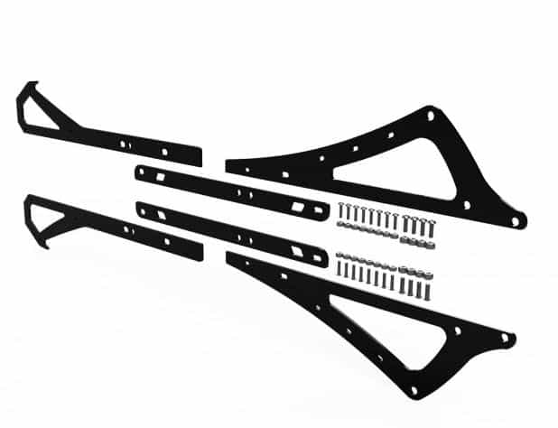 Vi hopp bus och lek finns risken att skenorna original böjer sig och lösningen för att förhindra detta är att montera ett par skenförstärkare. Vi på Sledtrax har vi valt att sätta dit ett par skenförstärkare från ITEK. Montering i 6 delar och ska ge skotern betydligt hållbarare skenor.