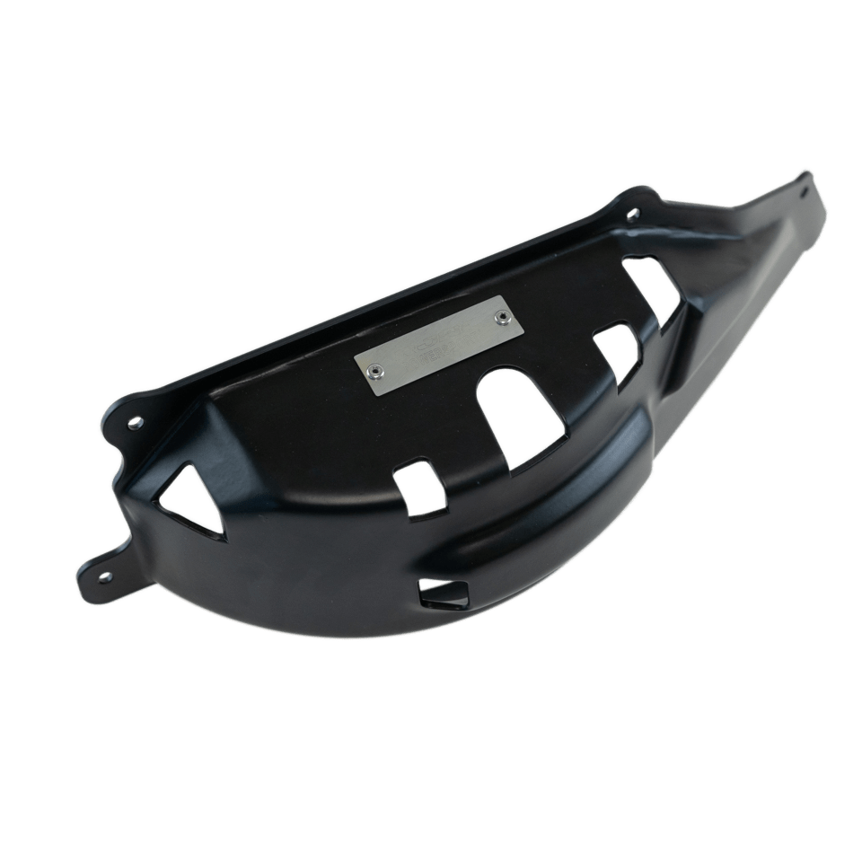 Då sidewindern har en väldigt låg attackvinkel skapar det risk att kedjehuset tar i stubb och sten vid skråkörning och går sönder. Detta är något vår skribent Jörgen fick erfara förra året med en förstörd dag ute i snön. Original sitter ett skydd i plast som inte löser problemet men våra vänner uppe i Boden på RJWC har tänkt till och tagit fram ett skydd. Ett 3 mm tjock hölje monteras i original fästet under kedjehuset och ska förhindra detta problem. Låter onekligen väldigt bra och jag antar att jag ofrivilligt kommer att utsätta detta skydd under säsongen. Läs mer hos RJWC