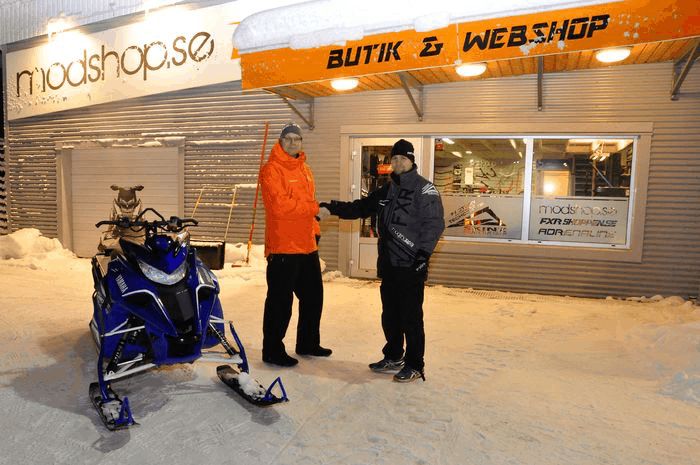 Några dagar senare konstaterade undertecknad att en stor låda märkt med ”Yamaha Snowmobiles” lastats av på gården bakom Modshop. Som ett barn som upptäckt ett nytt paket under granen blev svängarna snävare och snävare runt ovan nämnda företag. Aldrig tidigare har familjens jycke fått sig så mycket motion. Det gäller ju att hitta på en anledning att spana in om den stora lådan försvunnit in i verkstaden.