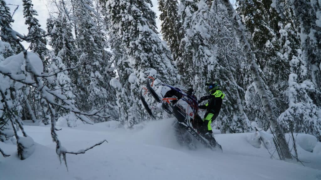 Nu ska vi ha med i åtanke att det här är en Crossover maskin i orginalutförande och är inte framtagen för att köra extrem backcountryåkning dagarna i ända, men även i stock utförande är det en riktigt rolig och busig maskin. Det man med fördel kan göra är att montera på ett variatorkitt från eftermarknaden. Är det så att du köpt maskinen med Rebel kittet så ingår en väl beprövad uppsättning från Modshop i Arvidsjaur. Där byts båda fjädrar, helix och vikter ut.