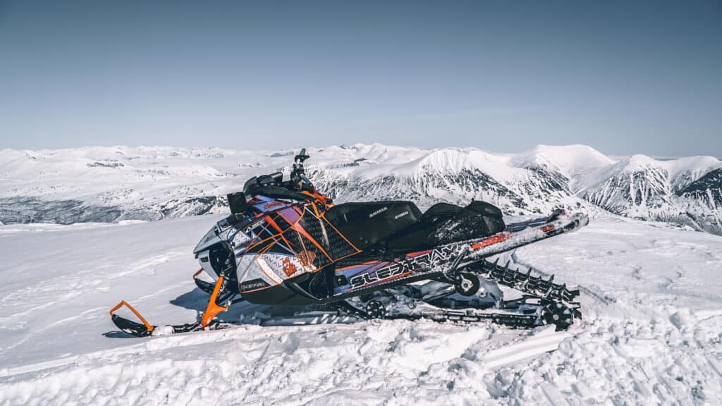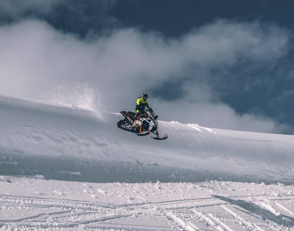 Hur känns maskinen att busa med under våren då? Ja som ni förstår så kan man ha skidorna i vädret nästan hur långt som helst med 270 hästar och en 64mm matta. Är du en person som gillar att ta high mark då är det rätt maskin för dig, maskinen bygger en otrolig fart när man laddar upp mot en fjällsida och det har varit undertecknad som fått vika ner sig, inte maskinen.