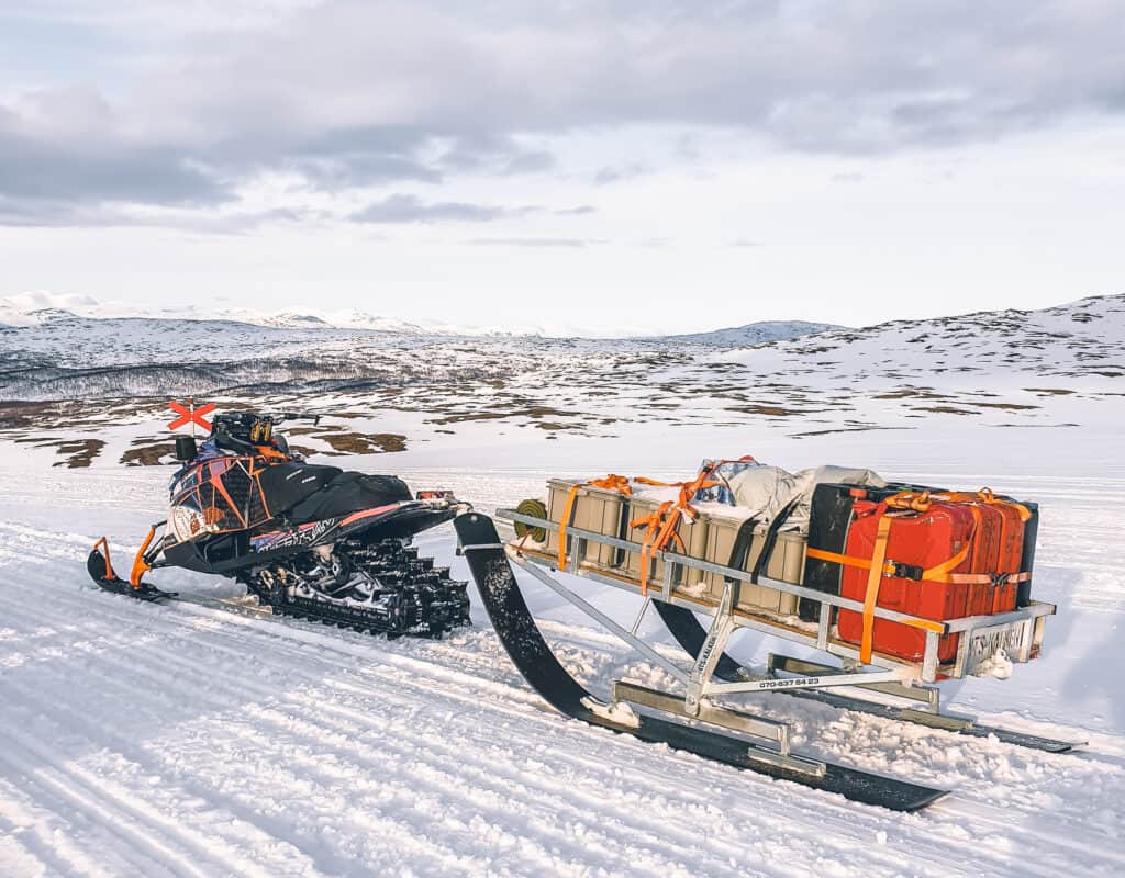 Som tur är hade vi en stadig och stabil kälke från NTS, stadig kan vi säga att den är då lasten inte gick av för hackor. I packningen var det drivmedel, mat och ved för ett helt kompani. Jag måste verkligen poängtera hur stadigt denna kälke går och ge Marcus som bygger dem en eloge. Förutom att den känns stabil så är den lätt att lasta då den är balanserad och väl avvägd. Sidewindern fick givetvis jobba men gjorde inte bort sig här!