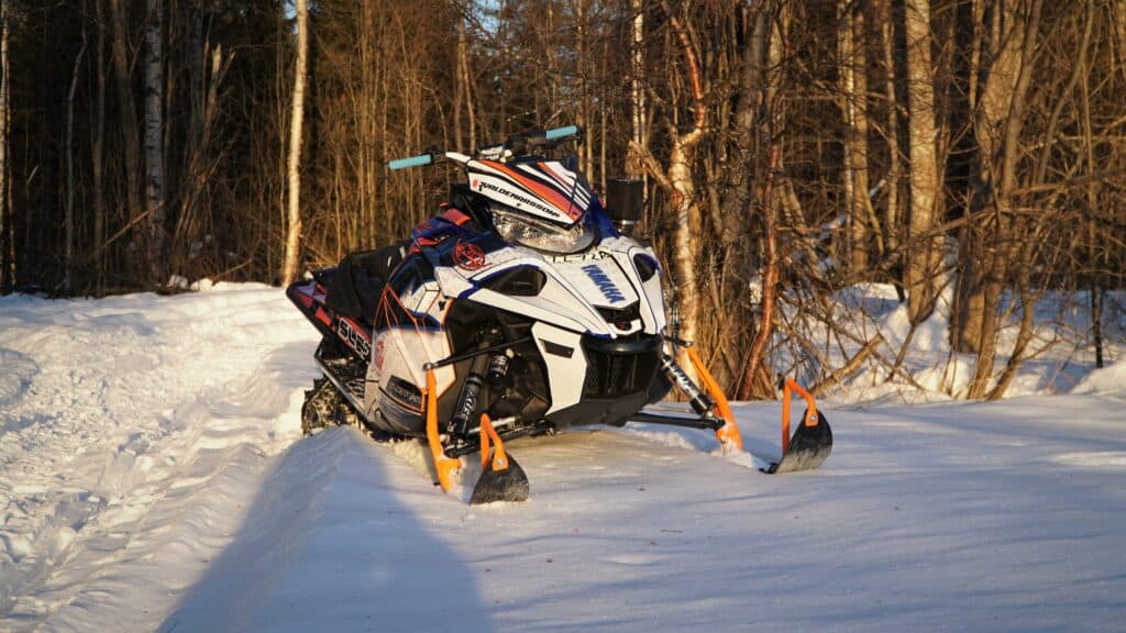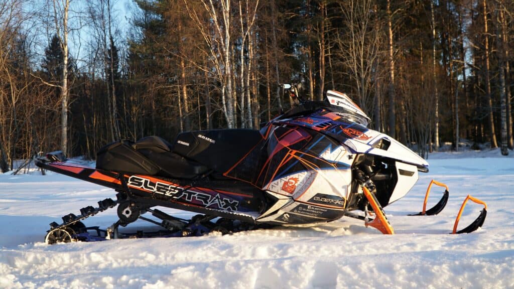 Årets Sidewinder är en crossover med 40” framvagn och en elupppvärmd mountaindyna i original utförande, Det funkar bra om man ska använda maskinen mer som crossover, nu är det så att undertecknad har ett stort intresse för backcountryåkning. Det har genererat till att byta ut dynan till skinz mellanhöga dyna som följer med i rebel kittet, vi har även monterat på Yamahas 36” framvagn från MTXn och FOX QS3 dämpare. Det här tror vi kommer bli en kombination som passar undertecknad och vi tror också att det kommer bli en extremt busig maskin.