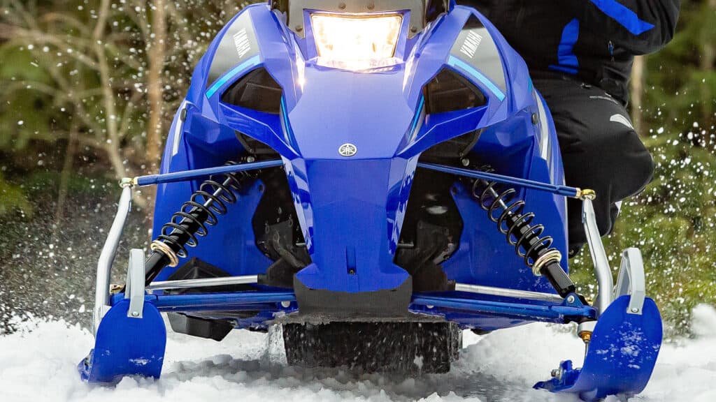 Eftersom maskinen är mindre än vanligt har man även anpassat mattan som är 35,6 cm bred jämfört med 38 och 40 cm som är vanligt på en fullstor snöskoter. Längden är 307 cm och kamhöjden 25 mm, vilket känns helt rätt på denna maskin som är byggd för ledkörning. Det är dock inte allt som är mindre på Yamaha SX Venom utan bränsletanken är på hela 44,3 liter, vilket är mer än på många större maskiner. Nu har vi inte kunnat testa bränsleförbrukningen men vi misstänker att man kan komma riktigt långt med en liten och på pappret bränslesnål motor tillsammans med en väl tilltagen tank.