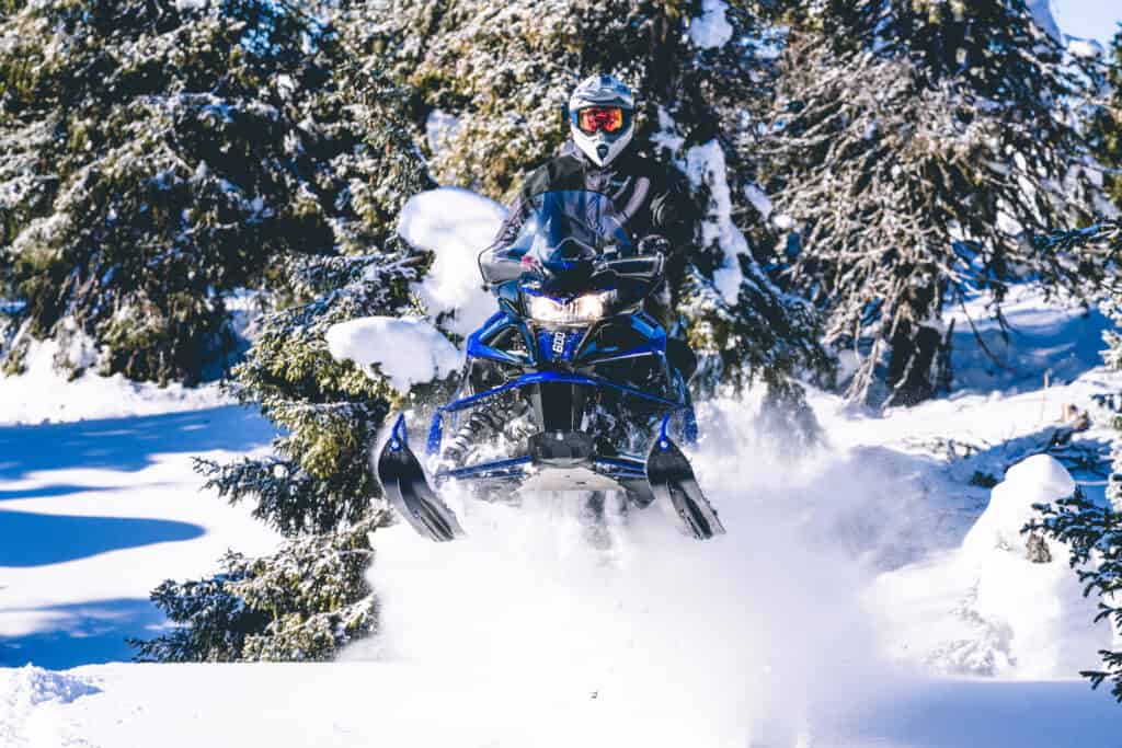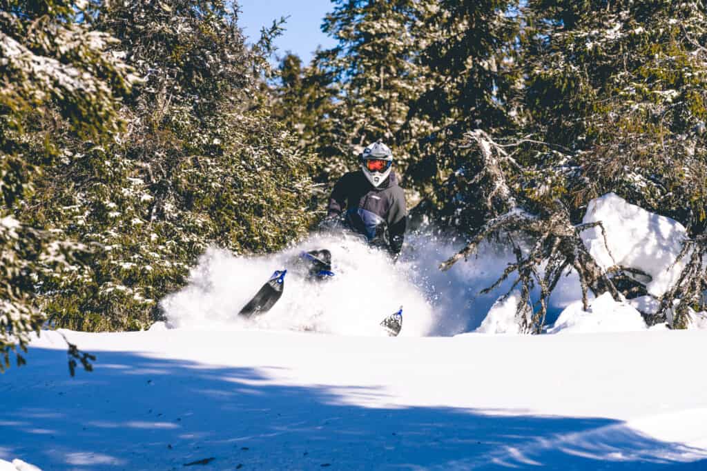 Friåkningen går från dalgång till dalgång och vid ett tillfälle måste vi stanna till njuta av solskenet och hämta andan, de kräver trotts allt sin man eller kvinna för den delen att bemästra maskinen ute i pudret bestämd kraft och fäst blicken dit man ska så löser de mesta sig på vägen. Hittar även ett mindre skutt där vi får chans att testa fjädringsegenskaperna på maskin. Klämmer gasen mot styret och vi lättar några meter. Inget dramatiskt landar i pudret och stötdämparna håller för landningen. Dock är dem kanske i de mjukaste laget men då är inte heller Yamaha Transporter byggd för luftturer. vi prövar en sväng att åka två på maskin och vrider då på torsionsfjädringen. Här styvar man upp boggien och det borgar för en bekväm åktur även med dubbla vikten på maskin.