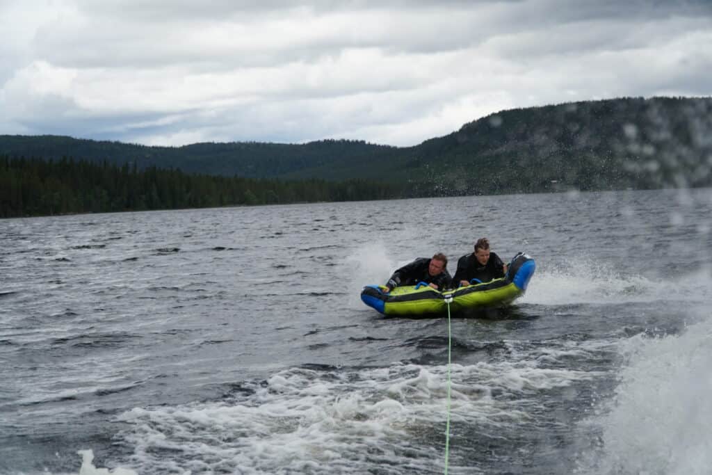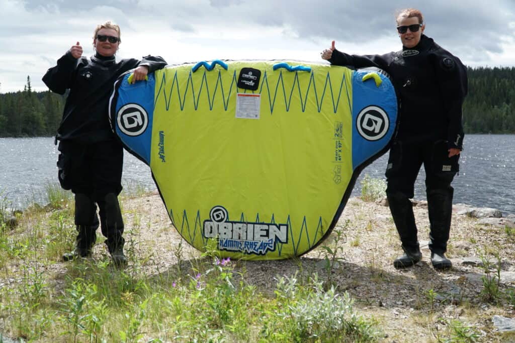 Med idag är flertalet vänner b.la. Boffen och hans flickvän Erika. De ska under dagen få testa en Hammerhead ring vi har fått låna av vattensport.se Då temperaturen i fjällsjön inte mäter mer än 15 grader har Boffen som är dykare ordnat med 2 st torrdräkter som snart ska komma väl till pass då det är dags för bus och lek.
